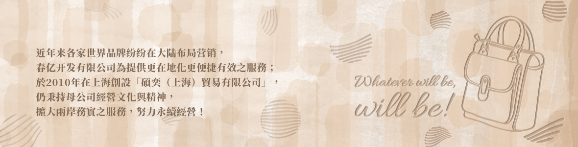 在台湾创立于1999年1月,迄今约20年余载,针对各类包袋秉持专业、信实、时尚、价廉之风格产品,搭配各类世界知名品牌公司十余家产品之行销,提供自家垂直一条龙之专业开发、设计、ODM、生产与横向行销服务,均百分百获得客户产品效益加分之肯定与支持!